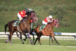 9月25日(日)、盛岡第10競走 第13回岩手県知事杯OROカップ[フジキセキ賞](芝1700m)にホッカイドウ競馬からダブルオーセブン号(牡3 55 井上俊彦騎手 伊藤 隆志調教師 473 -3)とマチカネカミカゼ号(牡6 57 服部茂史騎手 田中 淳司調教師 480 +2)が出走しました。