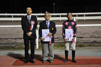 日高管内漁業協同組合長会協賛日高こんぶ特別 ファンサービス 2011.09.29 本日の第11競走、日高こんぶ特別競走協賛として、門別競馬場及び道内4場外発売所(Aiba札幌駅前、Aiba札幌中央、Aiba琴似、Aiba石狩)で日高昆布が合計500個プレゼントされました。 協賛:日高管内漁業協同組合長会 また、協賛競走の表彰式では、北海道漁業協同組合連合会日高支店長 阿部 陽一様より優勝馬ヴィクトリーリード号の関係者に副賞が贈られました。