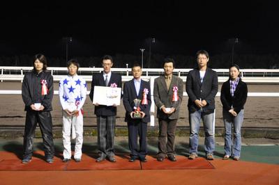 10月12日(水)、2歳重賞 大阪スポーツ杯第11回サンライズカップ(H3)[ステイゴールド賞]が行われ、桑村 真明騎手鞍上のイッシンドウタイ号が2着ゴールドメダル号との叩き合いをハナ差制して優勝しました(タイム 1分47秒8)。