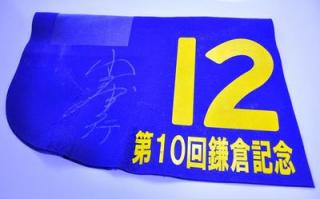 10月5日(水)、川崎競馬場で行われた第10回鎌倉記念優勝馬ニシノファイター号の馬主 西森 鶴 様のご提供により、鎌倉記念優勝肩掛けとレース使用ゼッケンを抽選で各1名様にプレゼントいたします(小国博行騎手のサイン入り)。
