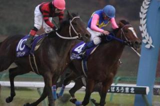 写真下:ゴール前(内 グランデスボスケ号 外 カンタベリーナイト号)