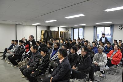 門別競馬場屋内調教用坂路施設の完成に伴い、日本中央競馬会(JRA)の角居 勝彦調教師を講師に招き、坂路の調教等についての講演会を開催し、ホッカイドウ競馬の厩舎関係者(調教師・騎手・厩務員)約70名が出席しました。