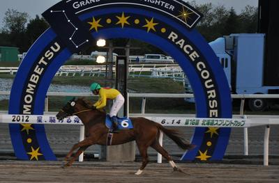 本日の第9競走ウイナーズチャレンジ競走(2歳オープン ダ1000m)が行われ、3番人気ミータロー号が2着ハードデイズナイト号に4馬身差をつけて優勝しました。同馬は、4月25日(水)のJRA認定スーパーフレッシュチャレンジ競走に続き2連勝。上級認定競走を優勝し、7月14日(土)JRA函館2歳ステークス(GⅢ)の出走資格を満たしました。