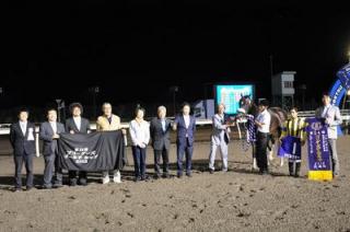 8月16日(木)、門別競馬場では、真夏の祭典 スポーツニッポン杯 第24回ブリーダーズゴールドカップ(JpnⅡ)(2000m 晴 重)が行われ、シビルウォー号(内田博幸騎手)が2着テスタマッタ号(岩田康誠騎手)に6馬身差をつけて優勝(タイム2.02.7)。昨年に引き続き連覇を達成しました。