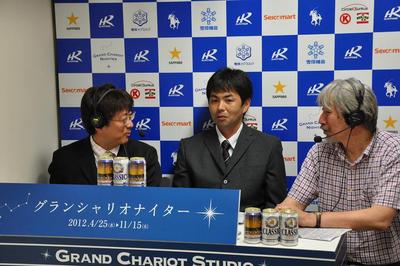 本日のグランシャリオスタジオ(9月4日) 2012.09.04 第10競走のパドック解説ゲストとして、日高軽種馬生産振興会青年部連合会長の辻陽氏が出演し、青年部の活動や門別競馬場での楽しみ方について話して頂きました。