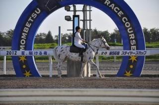 昨年の4月にデビュー予定であった誘導馬テン太が、本日誘導馬としてのデビューを無事迎えました。骨折休養後は、浦河町で誘導馬へのトレーニングを重ねて、馴致調教を担当したポール・ウィリアムソンさんと宮内 里佳さんが門別競馬場に駆けつけて、テン太の誘導馬デビューに騎乗しました。