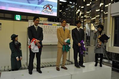 有馬記念ドリームフェスタ(有馬記念(GI)前日祭)!【ウインズ札幌】のイベントにホッカイドウ競馬騎手3名が出演 2012.12.22 本日(12月22日)、JRA WINS札幌の特設ステージで、ホッカイドウ競馬所属騎手3名によるプレミアムトークショーが行われました。 トークのテーマは、翌日に迫った「有馬記念(GI)俺ならこの馬に乗りたい!」ということで、出演した櫻井拓章騎手、川島雅人騎手、佐々木国明騎手の独自の視点からの有馬記念の予想を披露。トークショーの参加者達もメモをとったりして、普段なかなか聞くことの出来ない騎手目線からの予想に興味津々の様子でした。