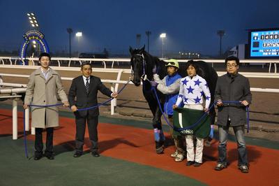 JRA認定競走スーパーフレッシュチャレンジ競走Ⅰ 結果 2013.04.24 第6競走は、今年最初の2歳戦JRA認定競走スーパーフレッシュチャレンジ競走Ⅰ(1200m 雨・良)が行われ、桑村真明騎手騎乗の2番人気のアイアンガール号が2着ハーブティー号に3馬身差をつけて優勝しました(1.16.8)。 アイアンガール号 父ワイルドラッシュ 母ハリケンアスリート 母父フサイチコンコルド 馬主 小川 洋 氏 角川秀樹調教師 生産 加藤牧場(日高町)