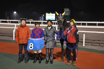 松井伸也騎手移籍後初勝利 2013.04.24 福山競馬からホッカイドウ競馬へ移籍した松井伸也騎手(齋藤正弘厩舎)が、本日の門別競馬第7レース サクラテイオー号に騎乗し、移籍後3戦目で初勝利を飾りました。 松井 伸也騎手コメント 「直線でもたつきましたが、頑張って走ってくれました。取り敢えず、勝てホッとしています。門別競馬場のコースはとても乗り易いです。これからも一生懸命頑張るので応援よろしくお願いします。」