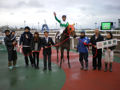 石川 倭騎手 初勝利! 2013.05.03 ホッカイドウ競馬から、本年デビューした石川 倭騎手(米川 昇厩舎)が、本日の門別競馬 第4競走アラマサアルデ号に騎乗し、デビュー6戦目で初勝利を飾りました。 石川 倭騎手 初勝利コメント 「やっと勝ててホッとしました。これからもたくさん勝ちたいです。応援よろしくお願いします。」 石川 倭(いしかわ やまと)騎手プロフィール 生年月日 平成7年4月10日 出身地 富山県 血液型 B型 身長 167.5㎝ 体重 46.9㎏