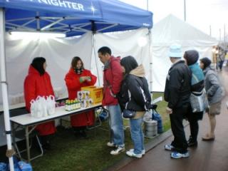 春のケイバまつり最終日 2013.05.03 春のケイバまつり最終日は、コスモバルク号との記念撮影会、ロイズポップチョコ先着プレゼント、サッポロビール&ポッカサッポロ協賛プレゼント抽選会、ビッグレッドファーム協賛グッズ抽選会、リボンちゃんと遊ぼうゲーム大会、ポニー乗馬体験などが行われました。悪天候にもかかわらず、2、246人ものお客様が来場され、各先着イベントはすぐに行列になりました。