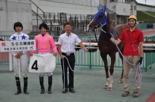 8月29日(木)、門別競馬 第5レースで桑村 真明騎手(角川 秀樹厩舎)がビーマイラブリング号に騎乗し、平成17年のデビューから、4,396戦目で中央・地方通算500勝を達成しました(ホッカイドウ競馬では現役12人目 )。