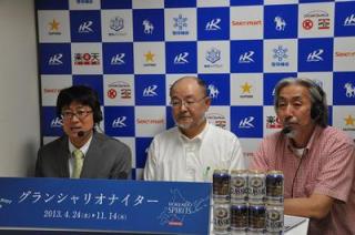 北海学園大学(古林英一ゼミ)学生が門別競馬場に来場 2013.09.12 北海学園大学経済学部古林英一教授ゼミの学生約10名が、課外学習の一環として、今年も門別競馬場にご来場して頂きました。バックヤードの検量所やレース後の枠場を見学しました。そして、第11競走のパドック解説には、ゲストとして出演して頂きました
