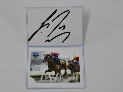 金沢競馬所属吉原寛人騎手サイン入り、ハッピースプリント号大井競馬第37回京浜盃優勝記念クオカードを抽選で3名様にプレゼントいたします。