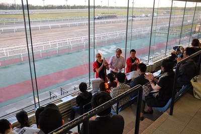 ダービーウイーク2014 STV杯 第42回北海優駿(ダービー)開催イベントとして、ホッカイドウ競馬応援大使「しろっぷ」と一緒にグランシャリオナイターを楽しもう!が行われました。ホッカイドウ競馬パドック解説でおなじみの競馬ブック高倉 克己氏による競馬講座、実況放送見学、普段は入ることができないVIPルームにて「第9競走どさんこラジオ特別」、「第10競走北海優駿[ダービー]」を観戦、また、「どさんこラジオ特別」の表彰式に参加するなど、もりだくさんの内容で参加者の皆様には大変喜んでいただきました。