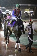 いやぁ、頑張ってくれましたけどねぇ・・。ハナ差ですか・・。JRAの強敵すべてからマークされる立場で、厳しい競馬になりましたけど、これだけ走ってくれましたし、馬には「ご苦労様」と言ってあげたいですね。この後はうちの牧場に戻して、激戦の疲れを癒してもらおうと思っています。完全にゆっくりさせて、また秋の競馬に備えていきますので。本当に惜しい結果ではありましたけど、応援していただき本当に有難うございました。