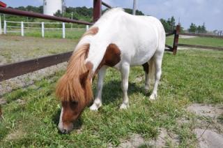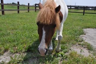 マキちゃんが帰ってきました! 2014.08.04 門別競馬場で皆様をお出迎えしているマキちゃん(メス・9歳)が新冠町の遊馬ランドグラスホッパーから婚活を終え、門別競馬場に帰ってきました。我が家に帰ってきて安心したのか、放牧地で元気に草を食べています。来年の春にはおかあさんになれることが期待されています。(秋頃には判明します。)明日からポニー☆ベンチで皆様をお迎えしますので、お楽しみください! 写真:ママとなる「マキちゃん」