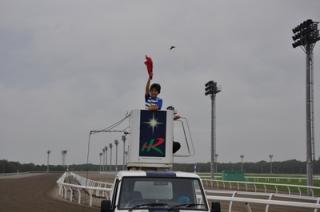 シュエット・ジュマン・フェスティバル2日目 2014.08.06 シュエット・ジュマン・フェスティバル2日目の門別競馬場は、ウニモグ体験乗車(馬場整備車両)、スターター体験(発走模擬体験)などの体験型イベントを中心に行われました。 明日の8月7日(木)も本日同様、各種体験イベントの他、夏まつりミニ縁日などのイベントがございます。 本日は濃霧による悪天候のため、第10競走以降が中止となり、皆様には大変ご迷惑をお掛けしました。明日はお子様が楽しめるイベントがございますので、皆様のたくさんのご来場お待ちしております。 写真:スターター体験