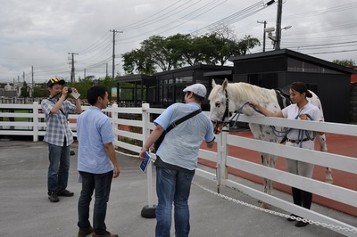 来週8月12日(火)~最終日8月14日(木)までの期間は坂路体験ウオークをはじめとした体験型イベント、パドック内で行われる三輪車レース、日高特産のヤマメすくい、人気を得ている日高3大和牛串販売など、家族やカップルなどで楽しめる様々なイベントを実施いたします。また、13日(水)はコンサドーレ札幌DAYとして、全競走をコンサドーレ札幌にちなんだ競走名を施行し、AIR-G’高山秀毅氏と野々村芳和氏の競馬&サッカートーク、ドーレくんとじゃんけん&PK対決!などのコラボイベントでお楽しみいただけます。