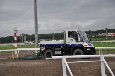シュエット・ジュマン・フェスティバル3日目の門別競馬場は、ウニモグ体験乗車(馬場整備車両)、スターター体験(発走模擬体験)、夏まつりミニ縁日などが行われました。