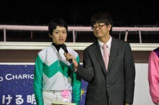 「道中は馬の邪魔をしないように心がけ、原先生の指示通り乗りました。4コーナーでは手応えも良く、抜け出すことができ、最後まで必死に追いました。重賞を勝った実感はないですが、すごくうれしいです。」