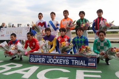11月29日(土)、30日(日)にJRA東京競馬場で開催される第28回ワールドスーパージョッキーズシリーズ(WSJS)の地方競馬代表騎手決定戦、2競馬場(盛岡・名古屋)での4競走によるポイント制で総合優勝を争う「スーパージョッキーズトライアル(SJT)2014」。その第2ステージが本日10月23日(木)名古屋競馬場で実施され、第1ステージ(盛岡競馬場)に引き続き、ホッカイドウ競馬から、宮崎光行騎手が参戦しました。