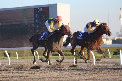 写真下:ゴール前「3号馬メジャーメアリー号・5号馬ドライヴシャフト号」