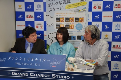 スタジオゲストには、AIR DO営業部の綱島 花波さんと客室乗務員の河原あゆみさんにご出演いただき、キャンペーン告知や会社理念について話していただきました。