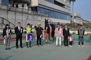 本日のメイン競走は、今シーズンから重賞に格上げされたスーパースプリントシリーズ2015 第1回 グランシャリオ門別スプリント【H3】[ダート1,000m(外) 晴・良]が行われ、1番人気ポアゾンブラック号が2着アウヤンテプイ号、グランヴァン(2着着同着)に2馬身差をつけて優勝しました(タイム:59.6)。