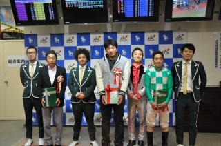ミニトークショー&サイン入りグッズ抽選会では、STVラジオやAIR-G'でパーソナリティを務めるザ・ビエル座の箕輪 直人氏を迎え、門別競馬場の雰囲気や自身の活動内容について話しをしていただき、その他にもスタジオゲスト出演や「ザ・トンアップモーターズ特別」の表彰式プレゼンターを務められ、グランシャリオナイターを盛り上げていただきました。