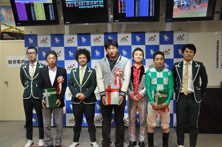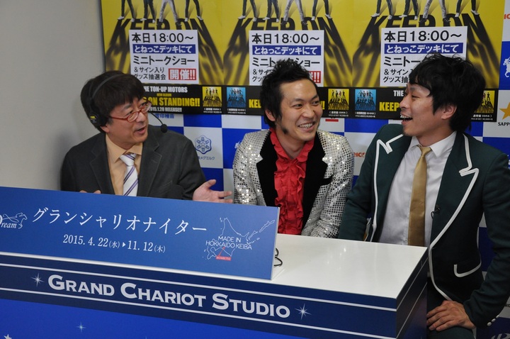 本日、STV「ブギウギ専務」でおなじみの上杉周大がヴォーカルを務めるホッカイドウ競馬オフィシャルサポーター、THE TON-UP MOTORS(上杉周大・井上仁志・長谷川雄一・堀内俊聡 )が門別競馬場に来場いたしました。