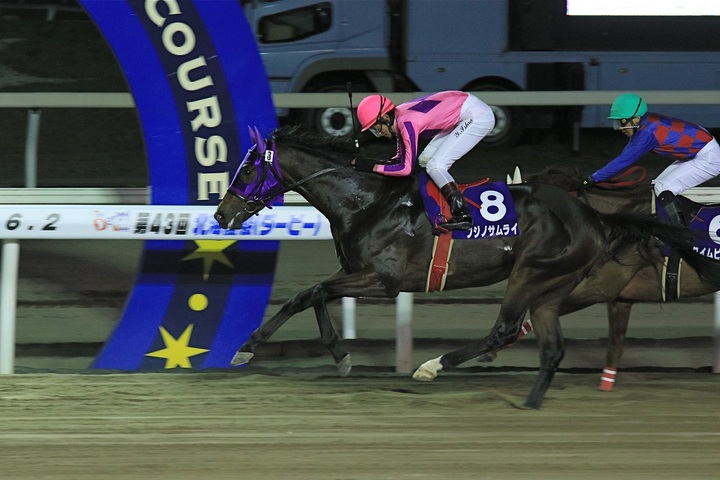 明日、7月8日(水)に大井競馬場で行われる第17回ジャパンダートダービー[JpnⅠ](ダート2,000m(外)・20:10発走)にフジノサムライ(米川 昇きゅう舎)が出走しますので、ご声援よろしくお願いいたします。