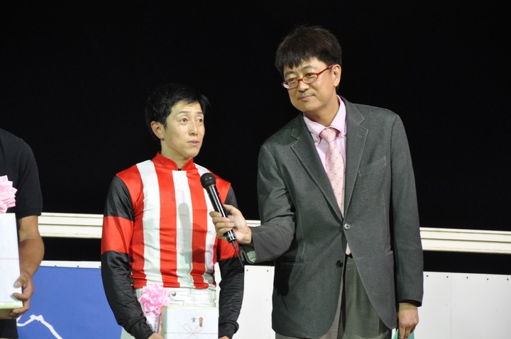 「ホント強い勝ち方をしてくれました。4コーナーでも反応良く、直線でも良い足を使ってくれました。今シーズンは重賞で結果が出せていなかったので、勝ててホッとしています。これから2015ワールドオールスタージョッキーズもありますし、地元でも頑張りますので応援よろしくお願いします。」