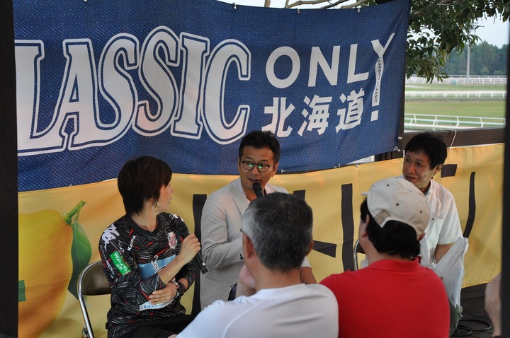 また、サポーターズバスツアーでは多くのコンサドーレ札幌サポーターの皆様にご来場いただき、バックヤードツアーの参加、夕食では宗像訓子監督と高山秀毅氏と一緒に門別競馬場名物「とねっこジンギスカン」に舌鼓を打ち、1日中を通して門別競馬場を満喫した様子でした。