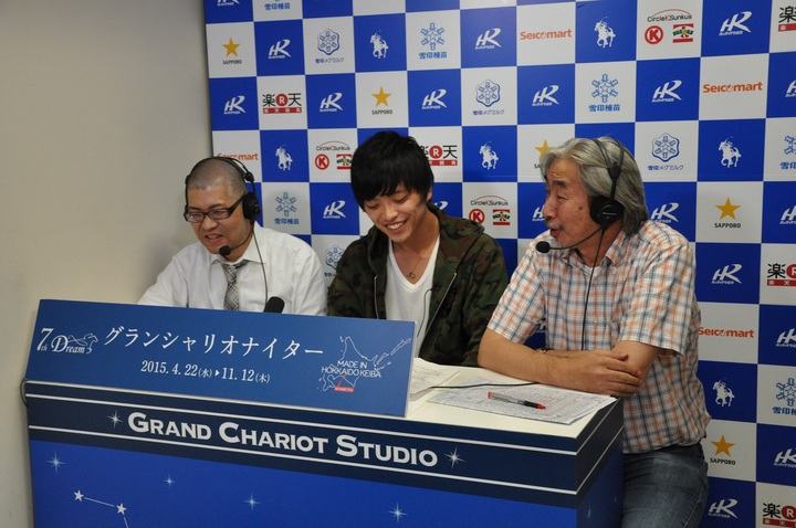 北海学園大学古林教授と学生が門別競馬場を見学 その他 2015.09.02 本日、北海学園大学経済学部古林英一教授と学生12名が、地域経済を学ぶ一環として門別競馬場を視察しました。 また、スタジオゲストとして、浅井大樹さんにご出演して頂き、2日間の視察旅行で学んだ事や初めて訪れた門別競馬場などについて、話して頂きました。 実況室見学 スタジオゲスト