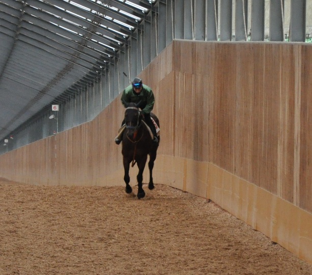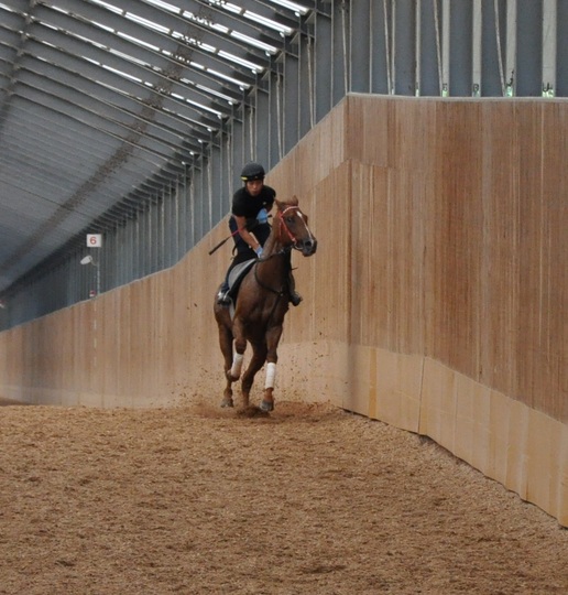 「芝の適性は、正直、やってみないと判断がつきませんが、決め脚を生かすタイプなので、芝で威力が増すようなら楽しみです。デキは更に良くなっていますので、期待しています。」