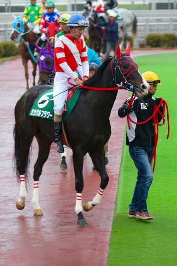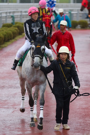 「ゲート内で暴れてしまって・・。こういうのは初めてで、理由は判らないのですが、後ろ扉を蹴ったりしているうちにゲートを切られてしまい、出遅れました。内に入れるか、外から押し上げるか迷ったんですが、内も馬場状態が悪いですし・・。結局外にしたんですが、最後は脚色が同じになってしまいました。」