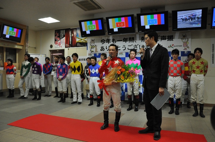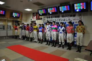 道営記念終了後には、毎年恒例となった「グランシャリオ・フェアウェルパーティ」が実施され、パティスリーパサパさんからご提供のケーキを囲み大勢のファンの方々がジョッキーとの交流を楽しんでおられました。