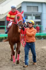 「デキは良かったですし、ゲートも互角に出て悪くない位置は取れたんですが、3コーナー手前からラプレシオーサなんかが上がって行ったところで一緒に付いて行くだけの脚が、まだなかったですね。そこで後れを取ったことで直線で前が壁になり、追いづらい格好になりました。コーナーが緩く、直線も長い門別で競馬をしてきたので、その影響もあったんだろうとは思います。この後はいったん北海道に戻り、オーナーの判断でJRAに移籍するか、九州の佐賀あたりに移籍することになるんじゃないでしょうか」