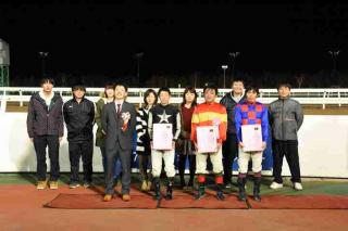 トータル35点を獲得した井上 俊彦騎手が見事総合優勝となり、2位は23点を獲得した岩橋 勇二騎手、3位は松井 伸也騎手と宮崎 光行騎手が19点で同点となりましたが、第2戦で3着となった松井 伸也騎手が3位になり、上位3名に副賞としてみついし和牛の詰め合わせが贈呈されました。