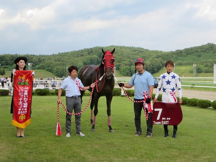 盛岡競馬で7月17日(祝月)に、「ジャパンジョッキーズカップ2017」が実施され、ホッカイドウ競馬からは桑村 真明騎手が全3戦に騎乗し、第3戦では優勝。桑村騎手が所属したTeamEASTがチーム優勝となりました。応援いただき、ありがとうございました。