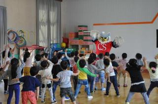 また、日高町を訪れたマスコットキャラクター「ドーレくん」は、町内の富川二葉保育所を訪問し、児童達との交流を行いました。