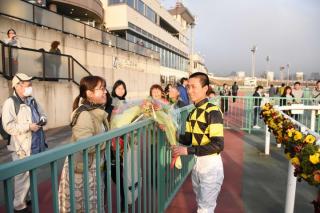 落合玄太騎手の紹介式が行われました その他 2018.04.18 本日(4月18日)、第2競走で新人の落合玄太騎手(田中淳司きゅう舎所属)がデビューを迎え、第6競走馬場入場後に紹介セレモニーが行われました。落合玄太騎手の今後の活躍にご期待いただき、応援よろしくお願いします。