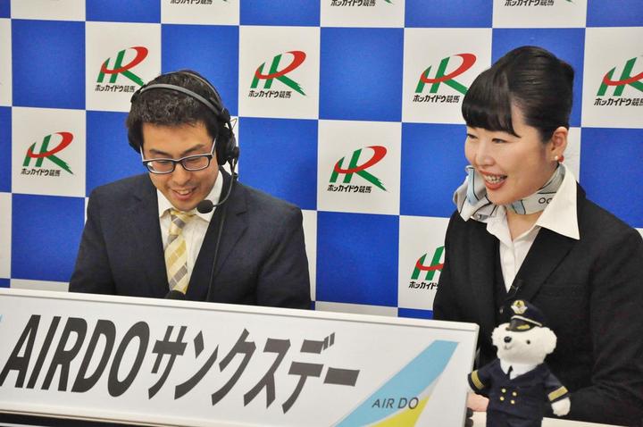 本日、門別競馬場では「AIRDO賞 第4回 ヒダカソウカップ(H2)」に併せ、「北海道の翼」として道民に親しまれ、今年就航20周年を迎えるAIRDOとのタイアップイベント「AIRDOサンクスデー」が実施されました。