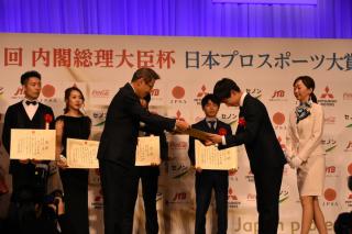 授賞式では、スポーツ界会の有名選手が集まるなか、表彰状と記念の盾が贈られました。