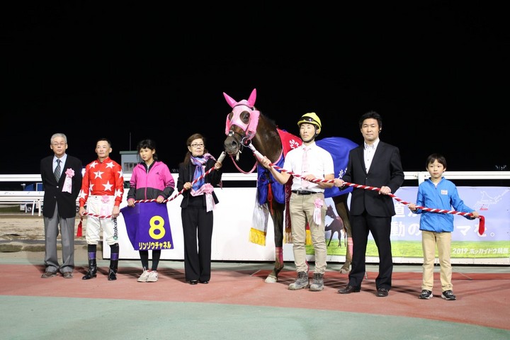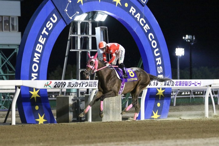 本日のメイン競走、ダービーシリーズ2019 STV杯 第47回 北海優駿(ダービー)〔H1〕(イスラボニータ賞)[ダート2,000m(外) 晴・良]が行われ、1番人気リンゾウチャネル号が2着リンノレジェンド号に3馬身差をつけて優勝しました。(タイム:2.10.9)