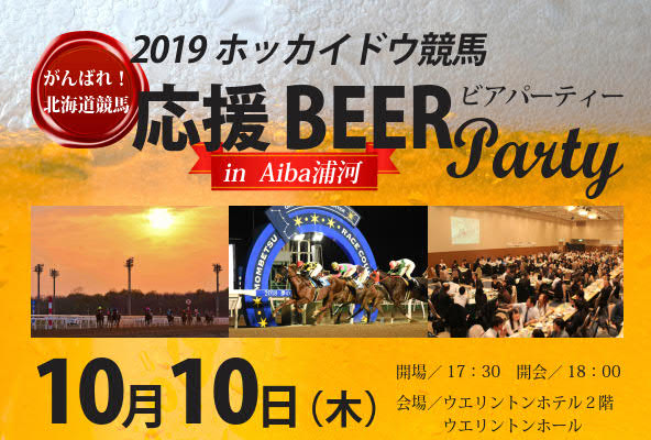 浦河町のウエリントンホテルにおいて、10月10日(木)に、「ホッカイドウ競馬 応援ビアパーティー」が開催されますので、お近くの方はぜひ足をお運びください。