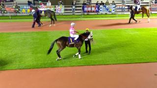 「ゲートの中でギリギリまで辛抱してくれていたんですけど、外の馬の音に反応してしまい、一番タイミングの悪い時にゲートが開いちゃいましたね。力はあると思うので、五分に出てくれていたら…左回りは苦にしていませんでしたし、スタートが全てですね。ただ、最初の直線は、気を良くして走りすぎている感もあり、気性が勝ちすぎているので、ゲートも含めて、もう少し力を抜いてくれたら良いですね。飛びはパワフルですし、凄く力のある馬だと思います」