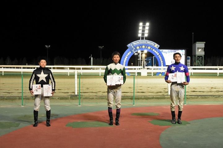 トータル31点を獲得した石川 倭騎手が見事 総合優勝となり、2位は27点を獲得した岩橋 勇二騎手、3位は25点を獲得した阿部 龍騎手でした。3名には、副賞としてみついし和牛の詰め合わせが贈呈されます。