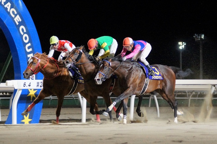 また、騎乗した落合玄太騎手は重賞2勝目(いずれもメイショウアイアン、ダートグレード競走は初勝利)となり、田中淳司調教師は昨年のエーデルワイス賞以来のダートグレード勝利となりました。